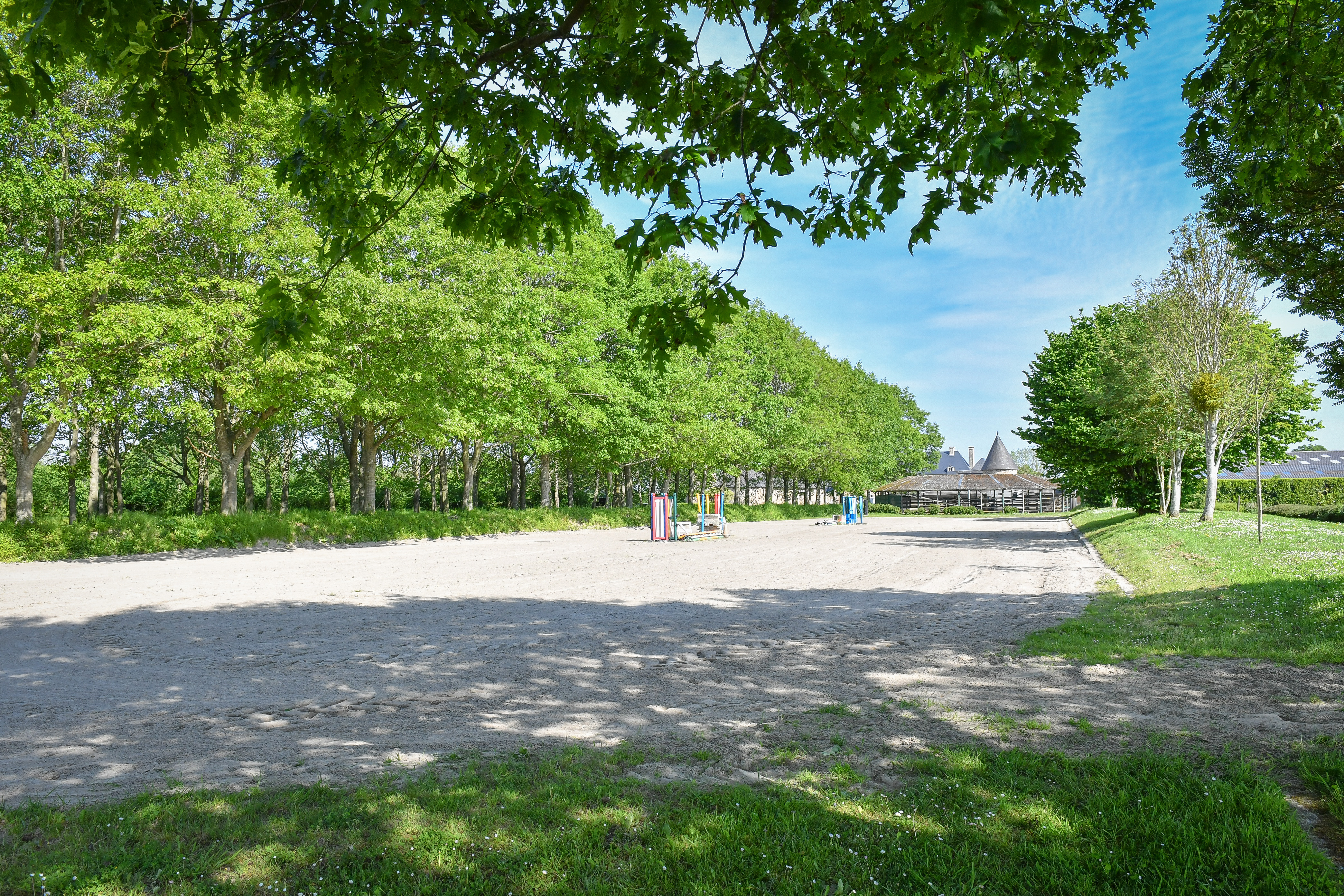 Le haras dispose de 60 boxes de 3,50m x 3m et 4 stabulations. Un manège (65*20) avec un sol Normandie Drainage.